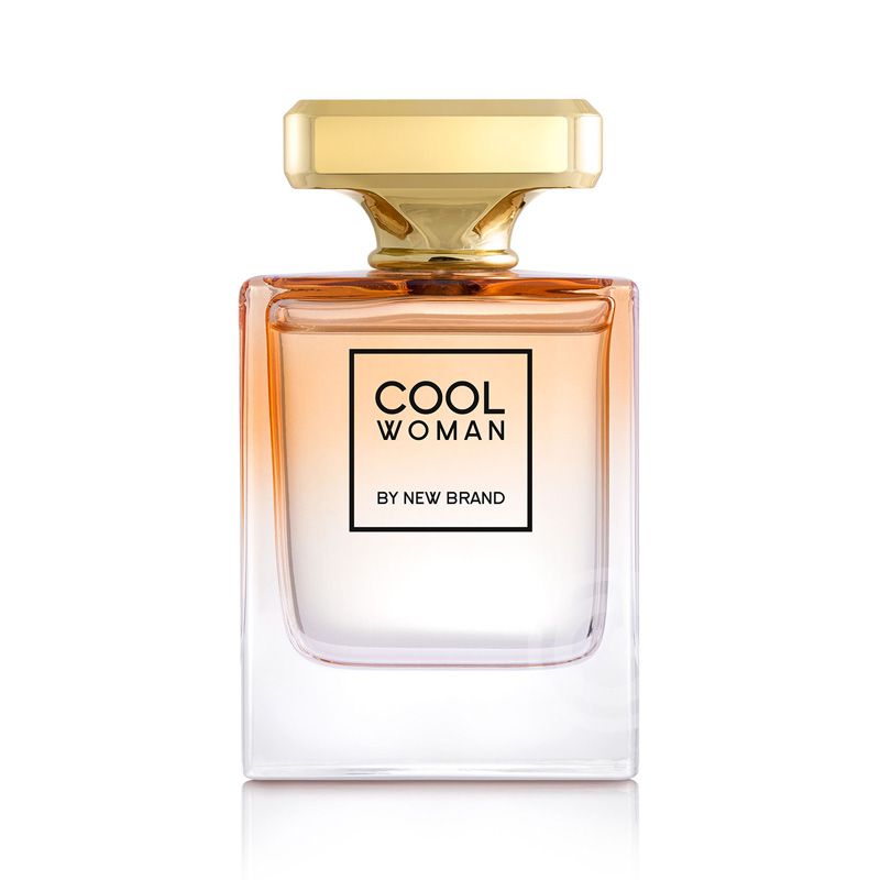 New Brand Cool Woman é um mistura rica de notas de laranja, mandarim, bergamota, mimosa, jasmim, farelo de tonka e baunilha.