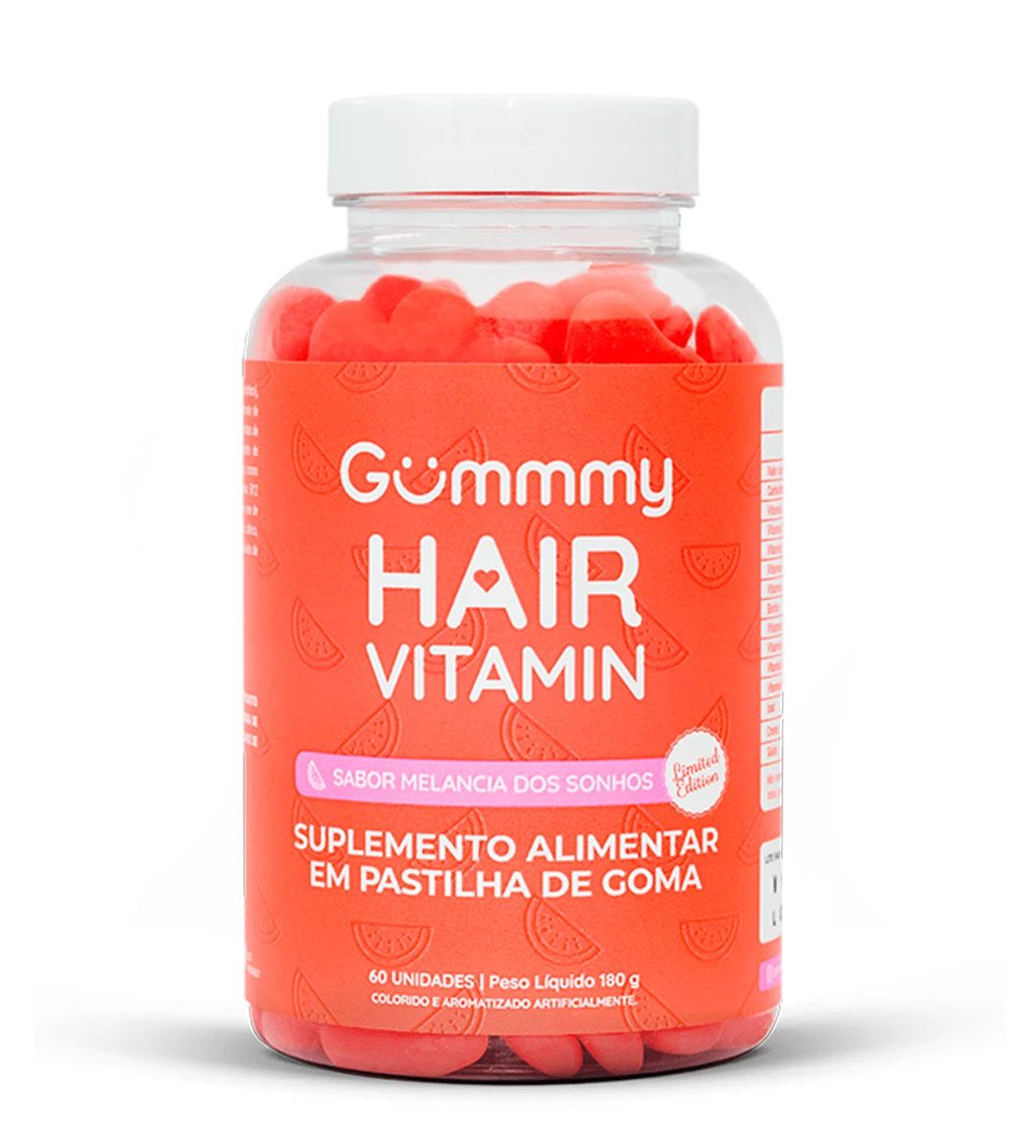 Gummmy Hair é um suplemento vitamínico que auxilia na redução da queda e crescimento rápido dos cabelos. Aumenta o brilho, fortalece e hidrata os fios.
